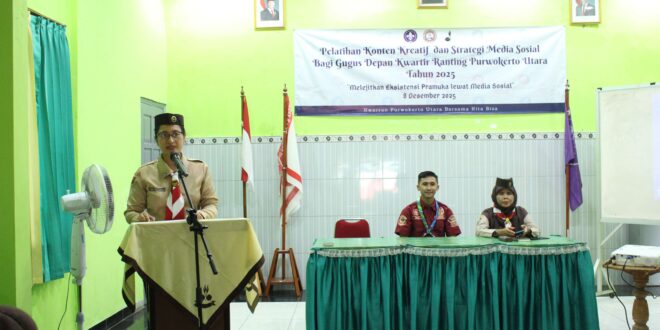 Purwokerto Utara — Bidang Humas Kwartir Ranting (Kwarran) Purwokerto Utara menyelenggarakan pelatihan konten kreatif dan strategi pengelolaan media sosial bagi para Pembina pangkalan se-Kwarran Purwokerto Utara. Kegiatan berlangsung pada Senin (9/12/2025) di Aula Korwilcam Purwokerto Utara dan dibuka secara resmi oleh Ketua Kwarran Purwokerto Utara.